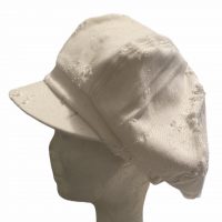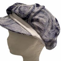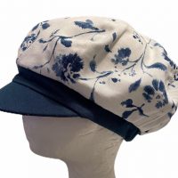 Cappello Donna con Visiera Bianco con Stampa Fiori Blu