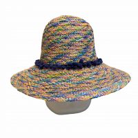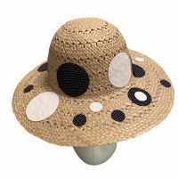 Cappello Donna in Paglia 100% con Bolli in Pelle Bianchi-Blu