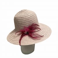 Cappello Donna in Fettuccia Lilla Pastello con Piume