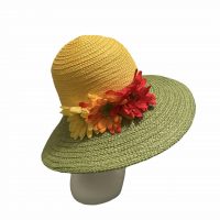 Cappello Donna in Fettuccia Verde e Gialla con Gerbere