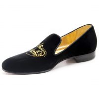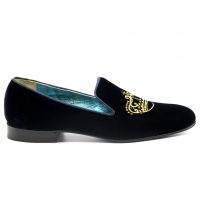 Scarpa Uomo Pantofola Uomo in Velluto Nero con Ricamo Art. 296