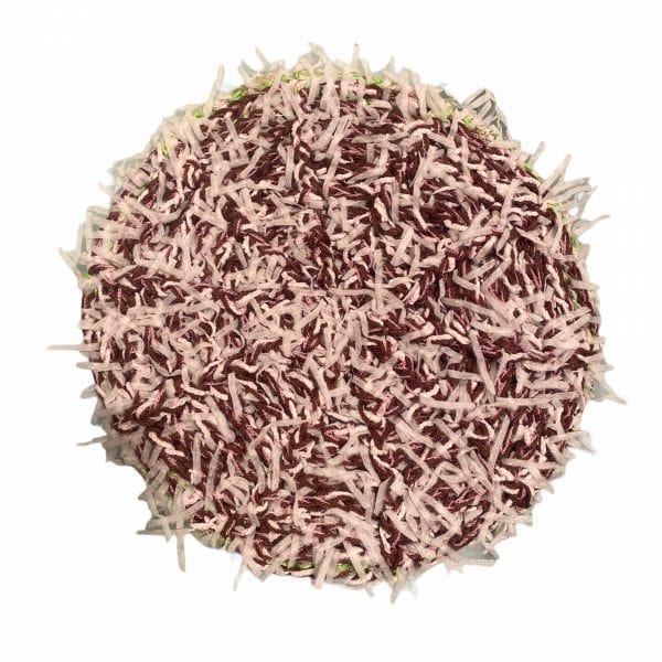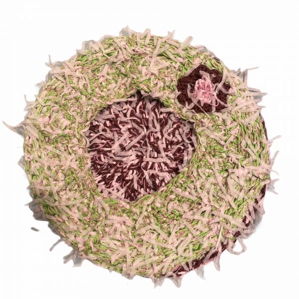 Cappello bimba basco fatto a mano all’ uncinetto. Lavorato con un particolare filato di cotone con ciuffi di carta. Il colore del frontale è verde e rosa mentre il disco è rosa e marrone. Taglia: cm. 46 ma la lavorazione all’ uncinetto permette una piccola estensione della circonferenza.