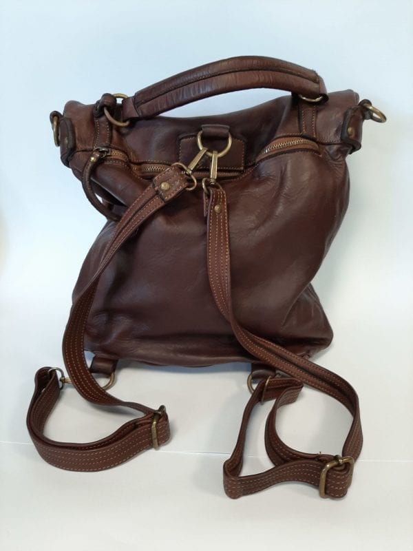 ZAINO VERA PELLE TINTO IN BOTTE, TASCHE INTERNE, TASCA ESTERNA C/ZIP, CHIUSURA CENTRALE C/ZIP E PATTINA